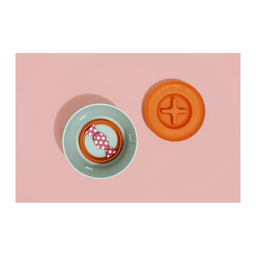 Simply add your small treat in the bottom, place the false base in the bottom and add your child's dinner. Once they have eaten all the goodness inside they are able to take out the false bottom to reveal the treat at the bottom.