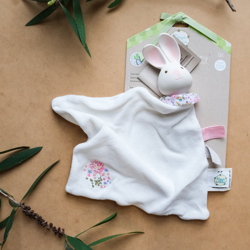 The Havah Snuggly has chewable natural rubber ears and a cuddly plush fabric body. Perfect for soothing a teething baby