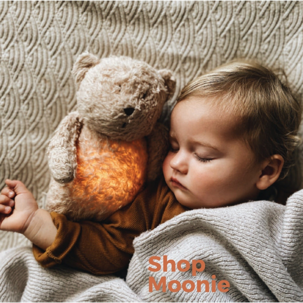 Moonie Organic Humming Bear is a sleep aid, playing soothing & comforting noises to assist babies falling & staying asleep. It also has delicate lights, great for older children who get worried about complete darkness. Moonie has 5 natural soothing sounds (womb pink noise, wind, forest stream, sea waves, rain) as well as gentle lullaby.