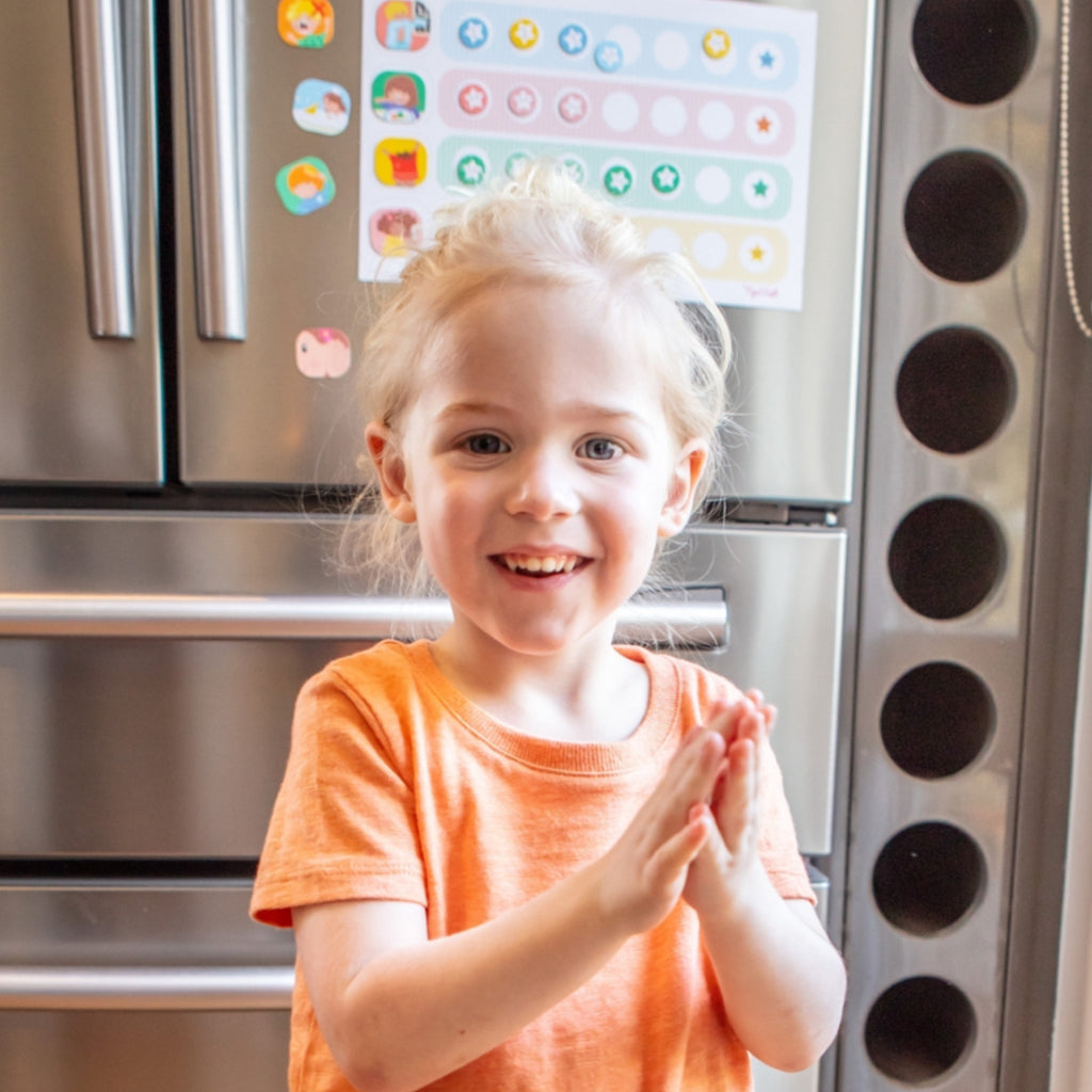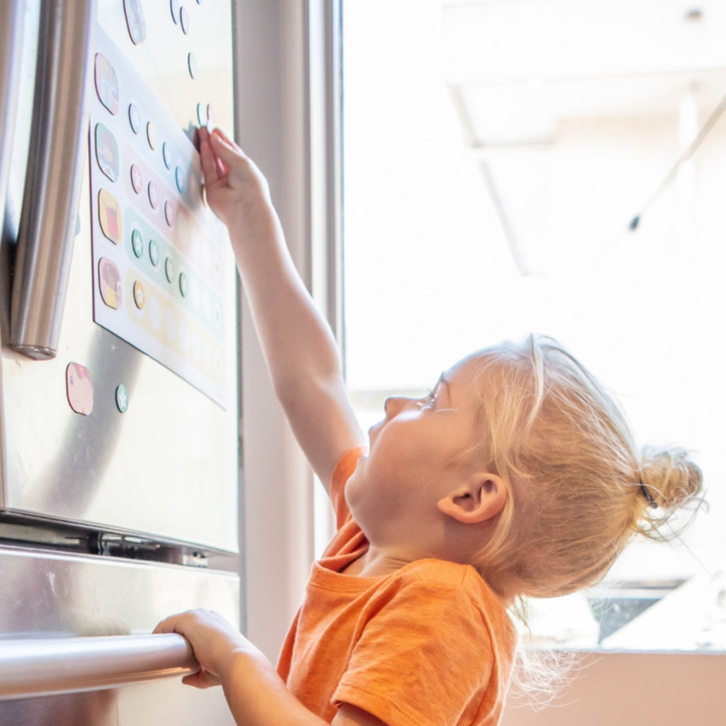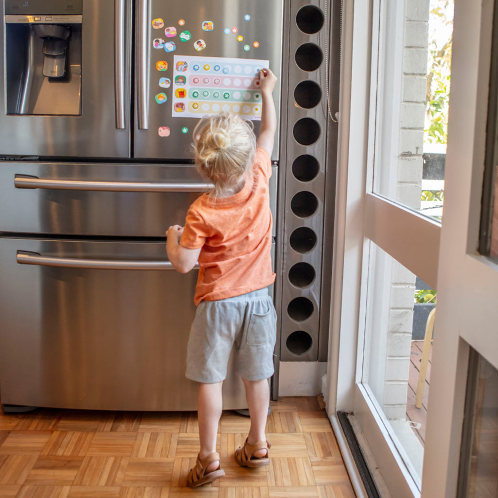 The chart can be customised for tracking household tasks like unpacking the dishwasher and cleaning teeth or rewarding positive behaviours including sharing and listening. The chart is also magnetised so can be easily used on fridges and white boards.