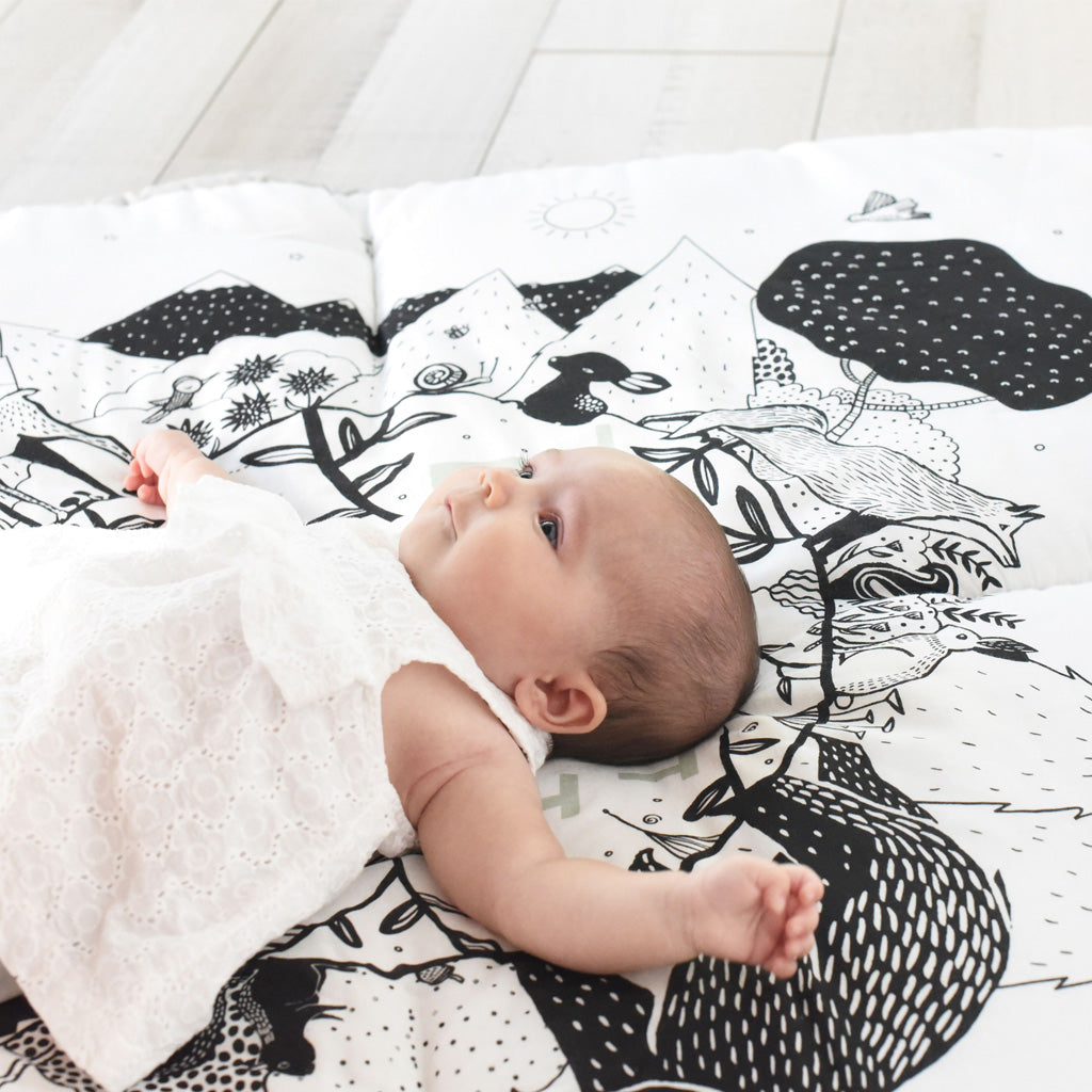 The Forest Wee Gallery reversible playmat is perfect for little ones. This mat is easy to take from room to room and is great for play time and tummy time. This gorgeous playmat is adorned with black and white high contrast images in distinctive Wee Gallery style.