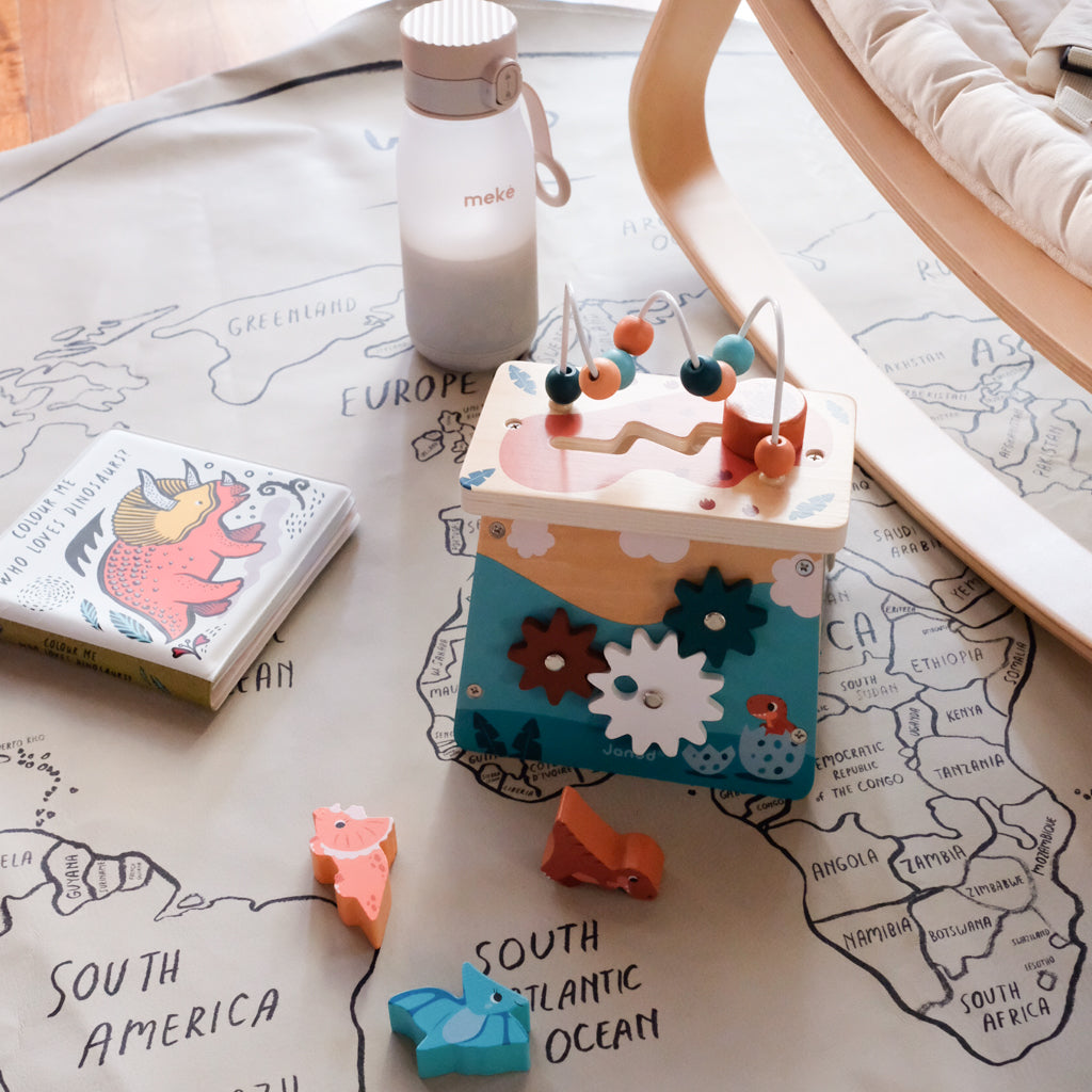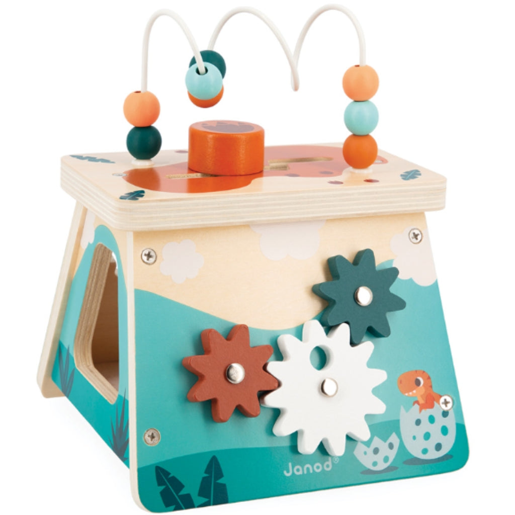Janod Multi Activity Volcano is a great first birthday present for Dinosaur lovers. Lots of activities to keep kids entertained and also develop their fine motor skills through play.