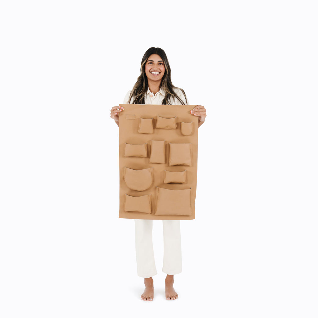 Gathre Wall Tidy is ready to pocket for all your trinkets and treasures. Perfect for hanging near changing station, kids room, crafts room, and on the wall along the hallway.