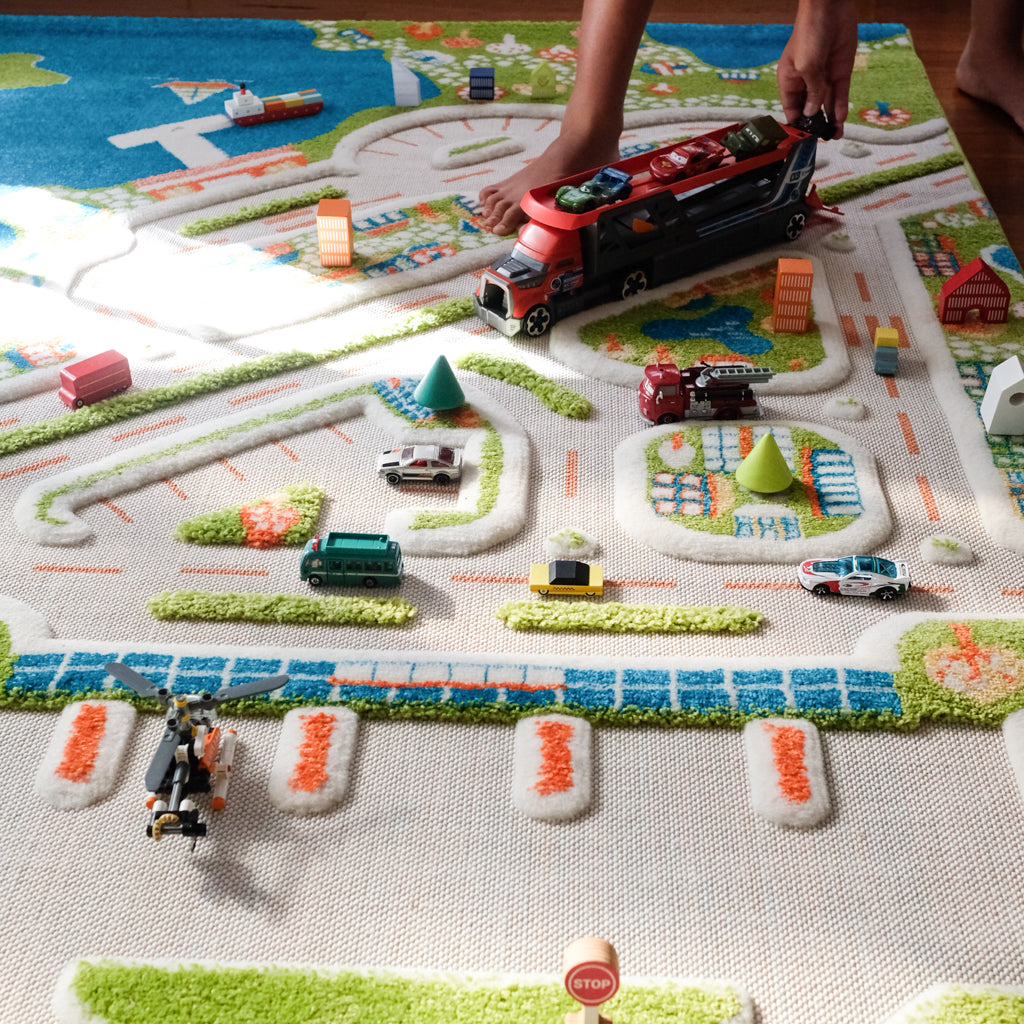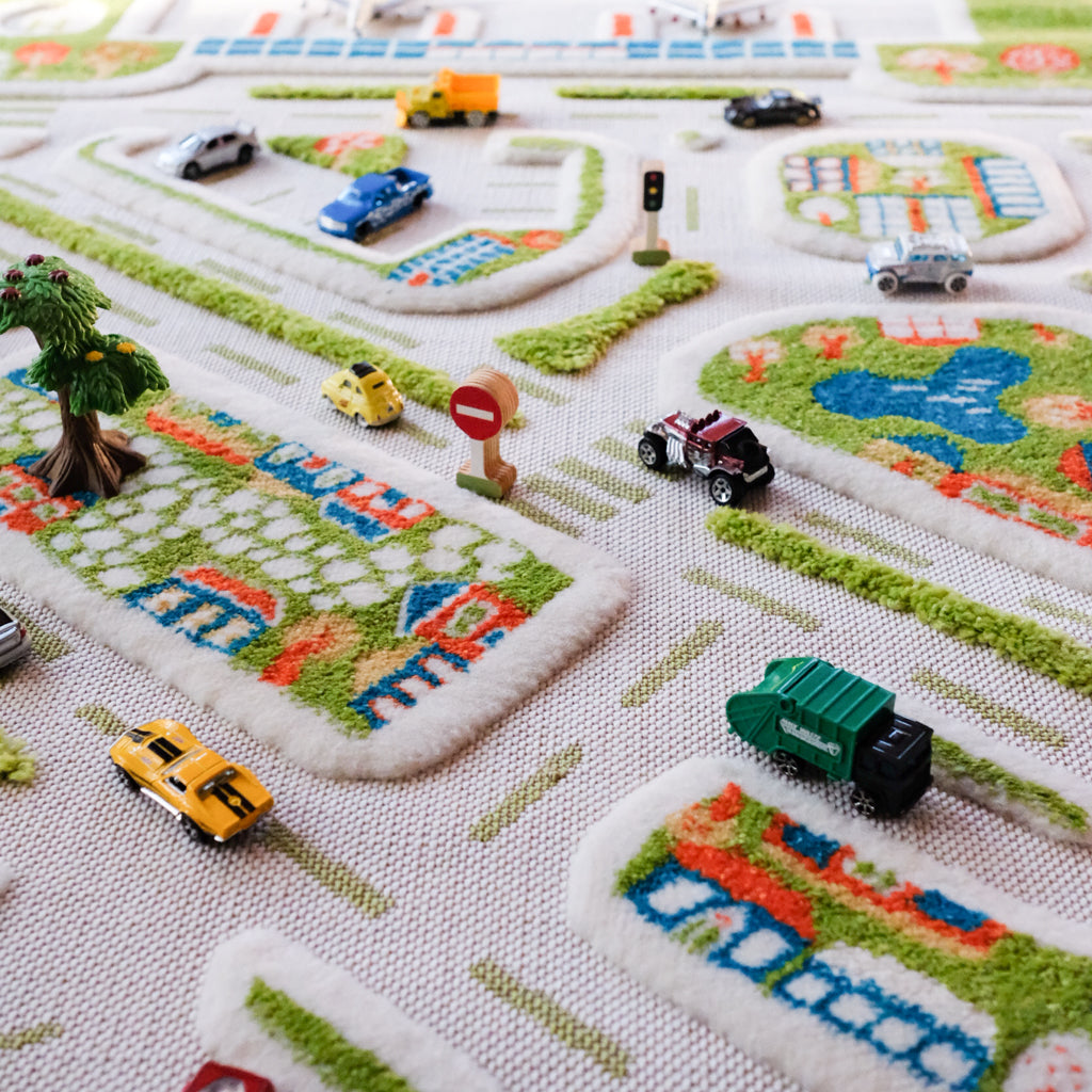 ivi Play Rug unique 3D features with different surface thickness & textures are inviting for children to bring their toys and play.
