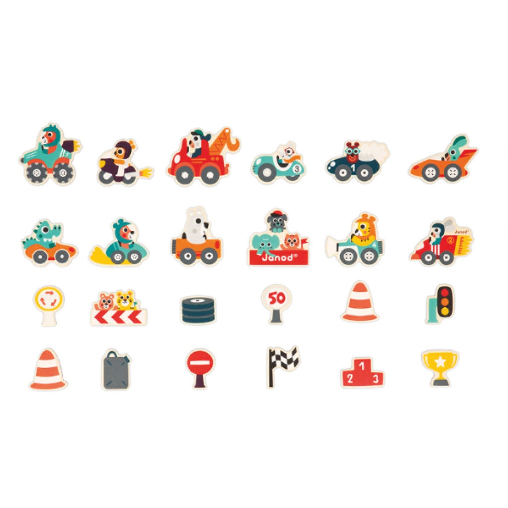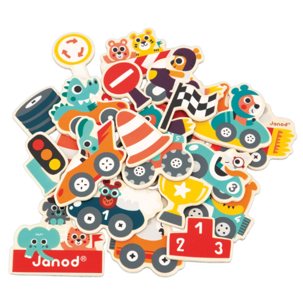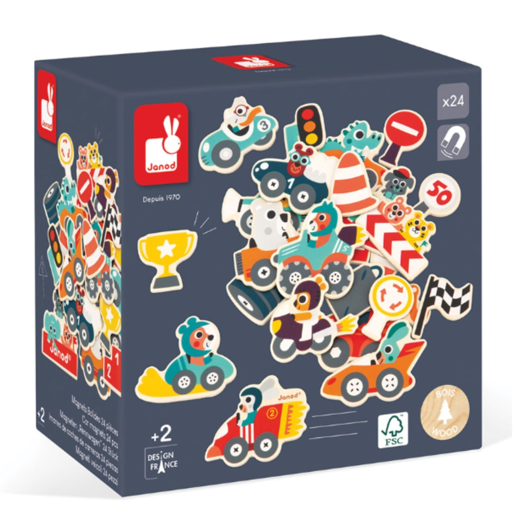 Ready set go! The race is on for all magnetic surfaces with this set of 24 wooden magnets
