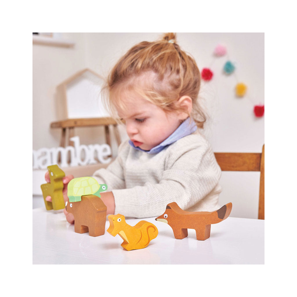 This wonderful collection of 9 wooden animals is perfect for on the go and fun at home with its fabric drawstring bag.