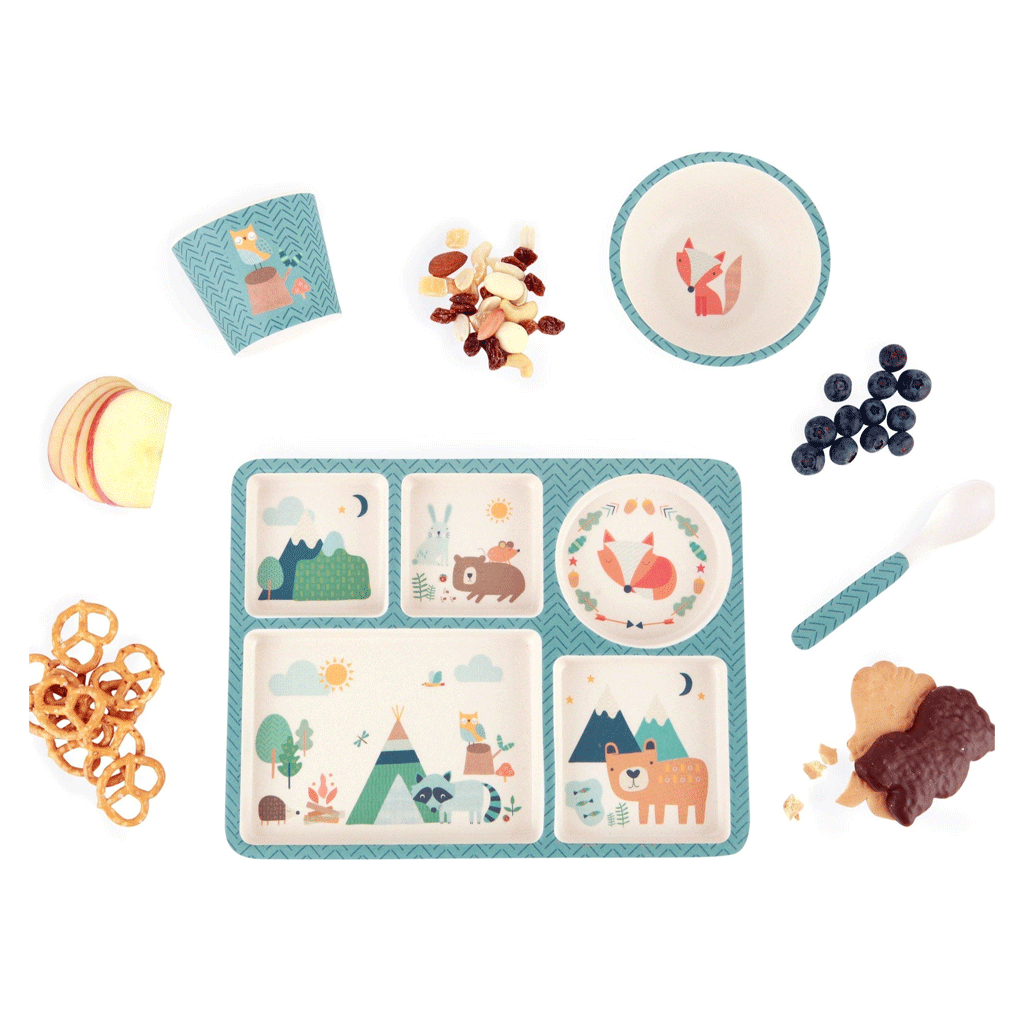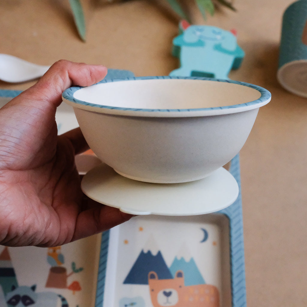 - This set includes 5pc set includes divided plate 21 x 27cm, Small Bowl 13.5 x 11.5 x 5cm, Cup 6 x 6.5cm & Spoon 13.5cm long and suction cap