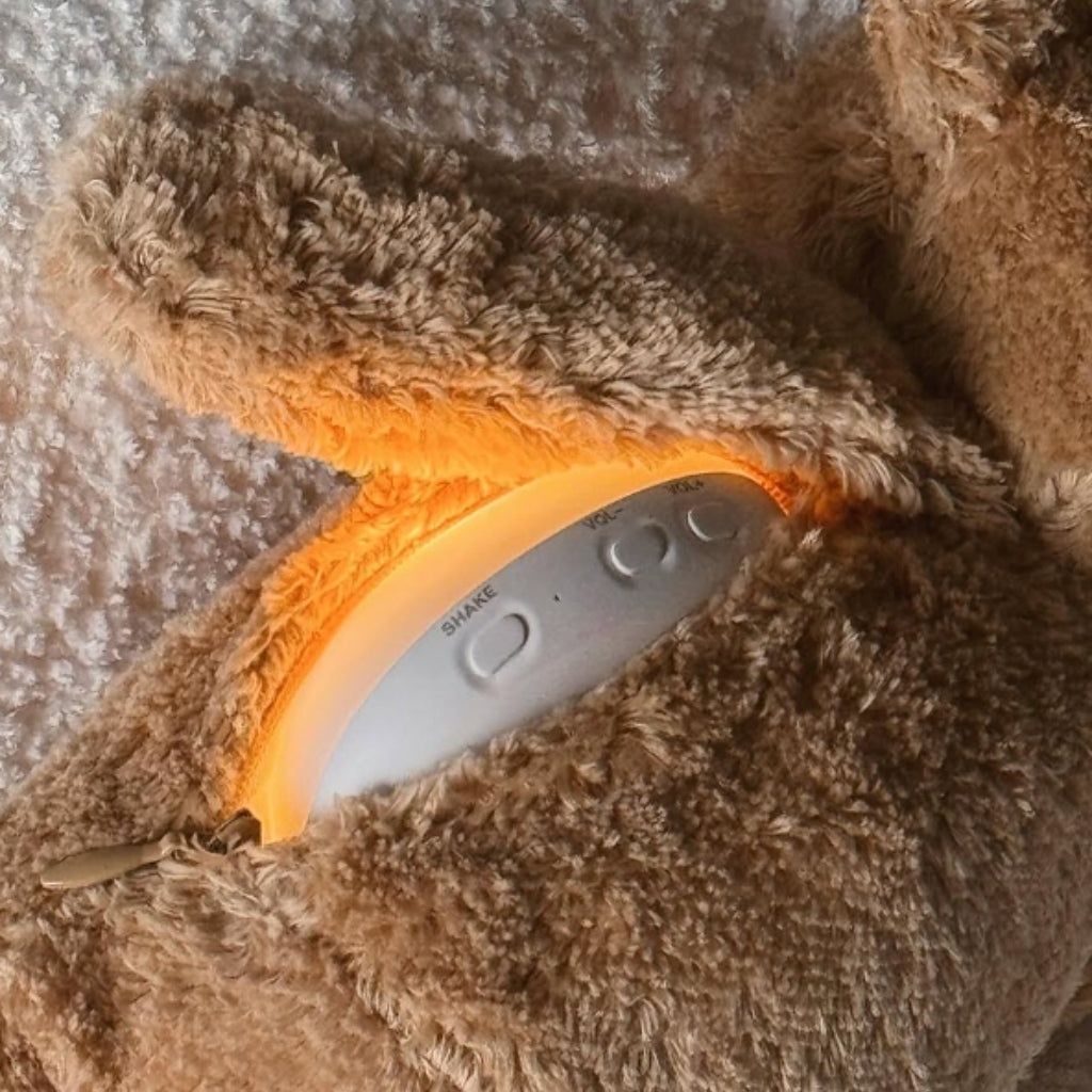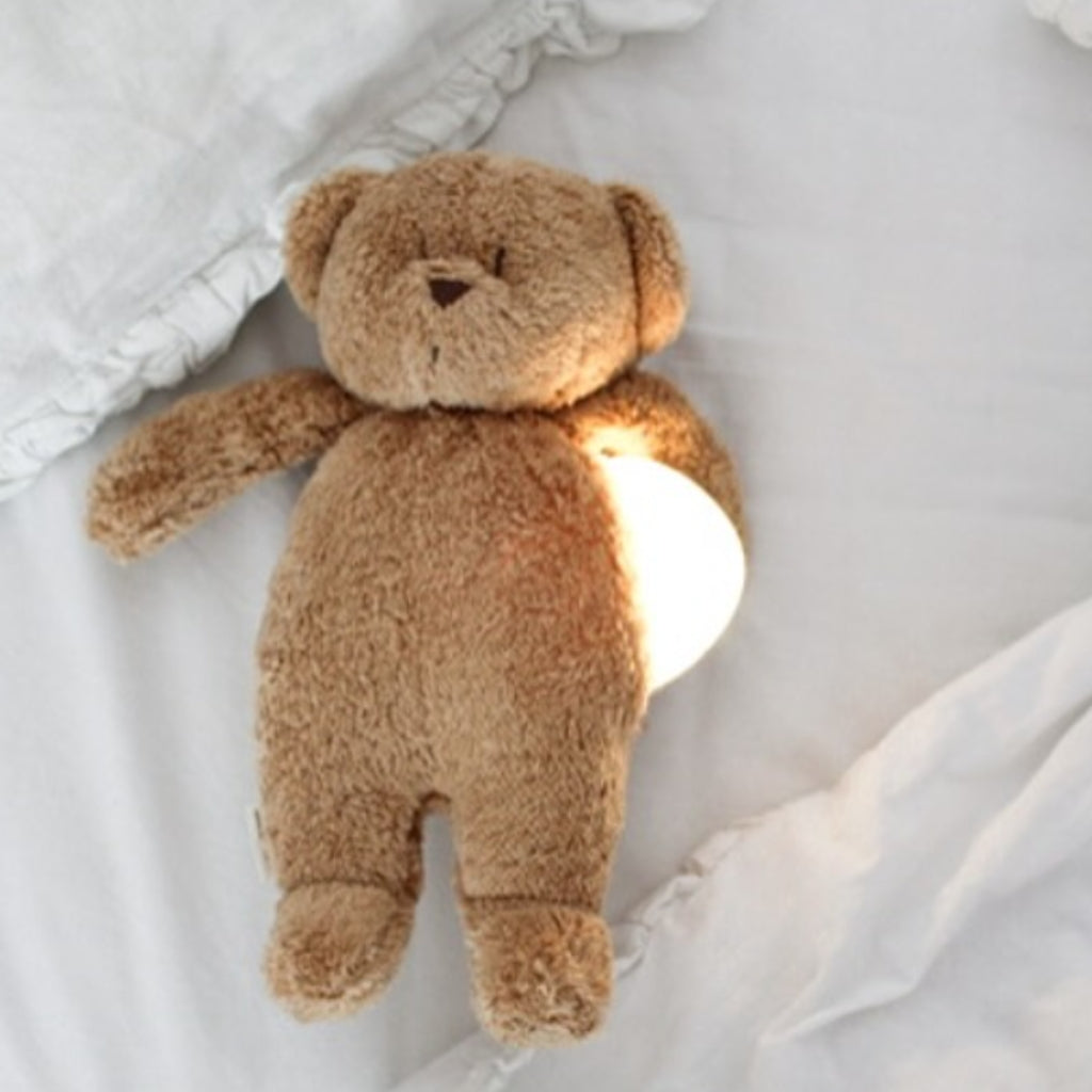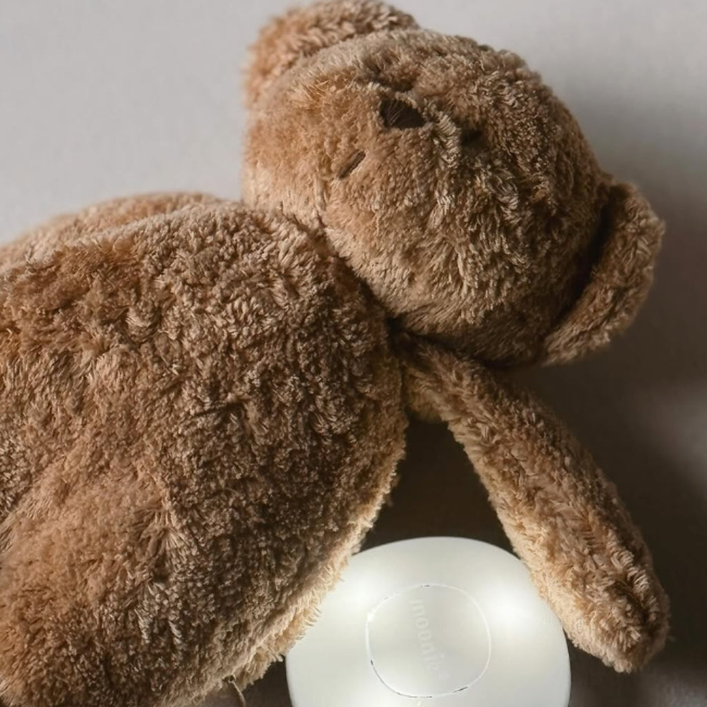 Moonie Organic Humming Bear 2.0 - Cappuccino is a sleep aid, playing soothing & comforting noises to assist babies falling asleep. It also has delicate LED lights, great for older children who get worried about complete darkness. Moonie 2.0 has improved module with light on/off shake function, Debussy soothing tune and ability to voice record.