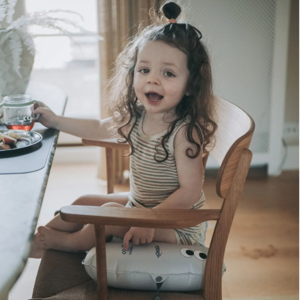 Noui Noui Have a Seat is an inflatable seat cushion for a child who is too big for the high chair and too small for the dining chair.