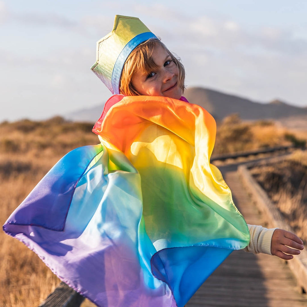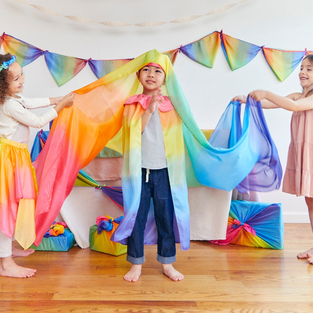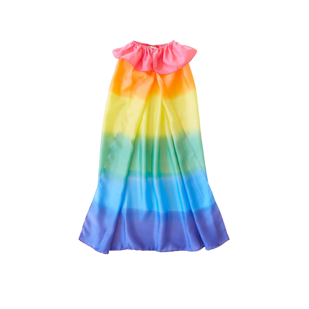 Sarah Silk Capes are a staple of dress-up and dramatic play. They are silky soft yet durably made from heavyweight silk. An elastic neckband and shell button make Sarah Silk's Capes easy to put on and take off and elegantly simple for children!