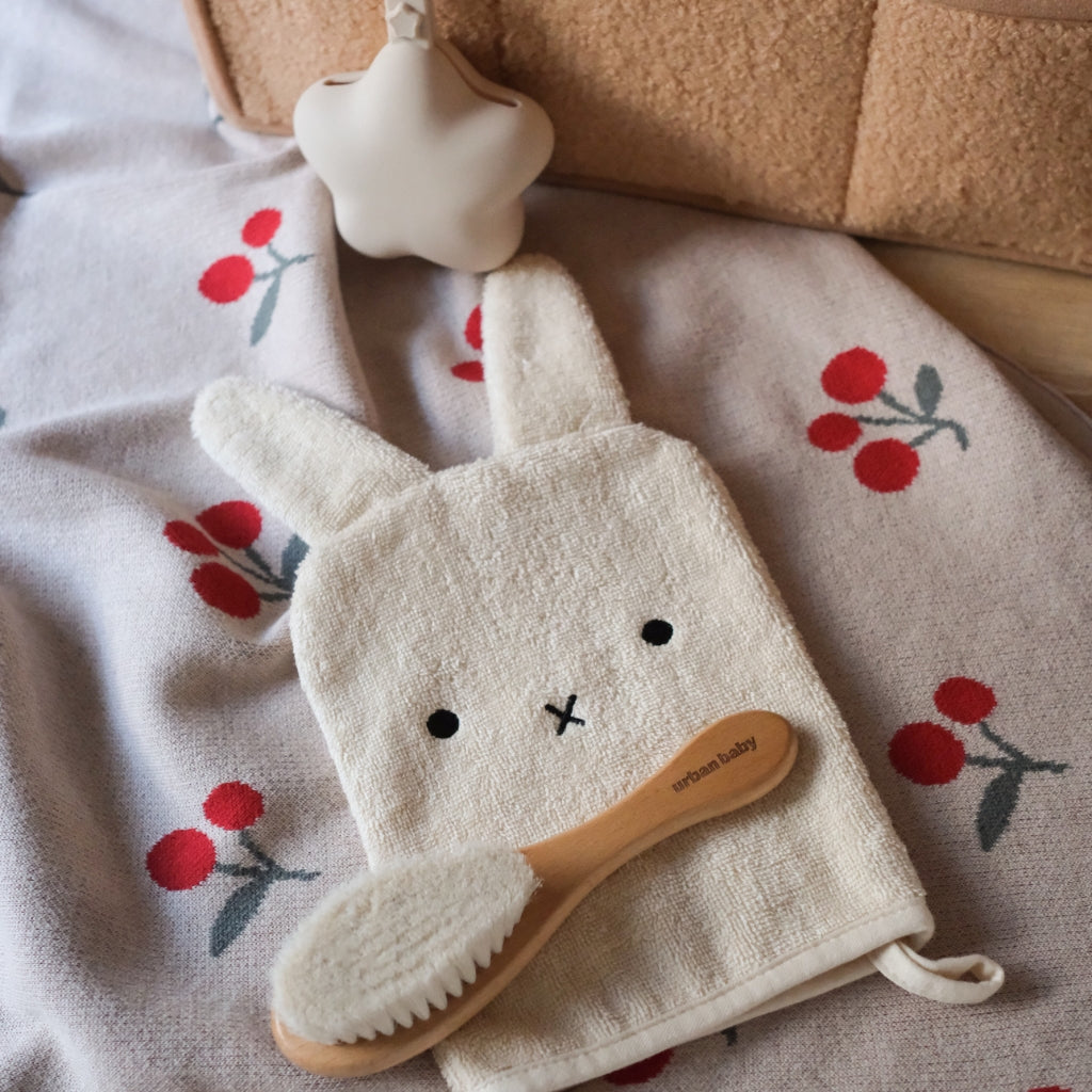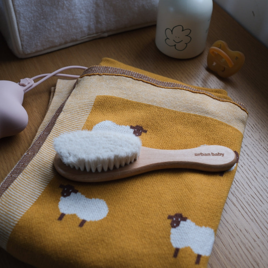 Urban Baby natural baby hair brush has soft bristles made from goat hair that are gentle on babies' hair and scalp. Gently brush baby's scalp to assist with cradle crap.