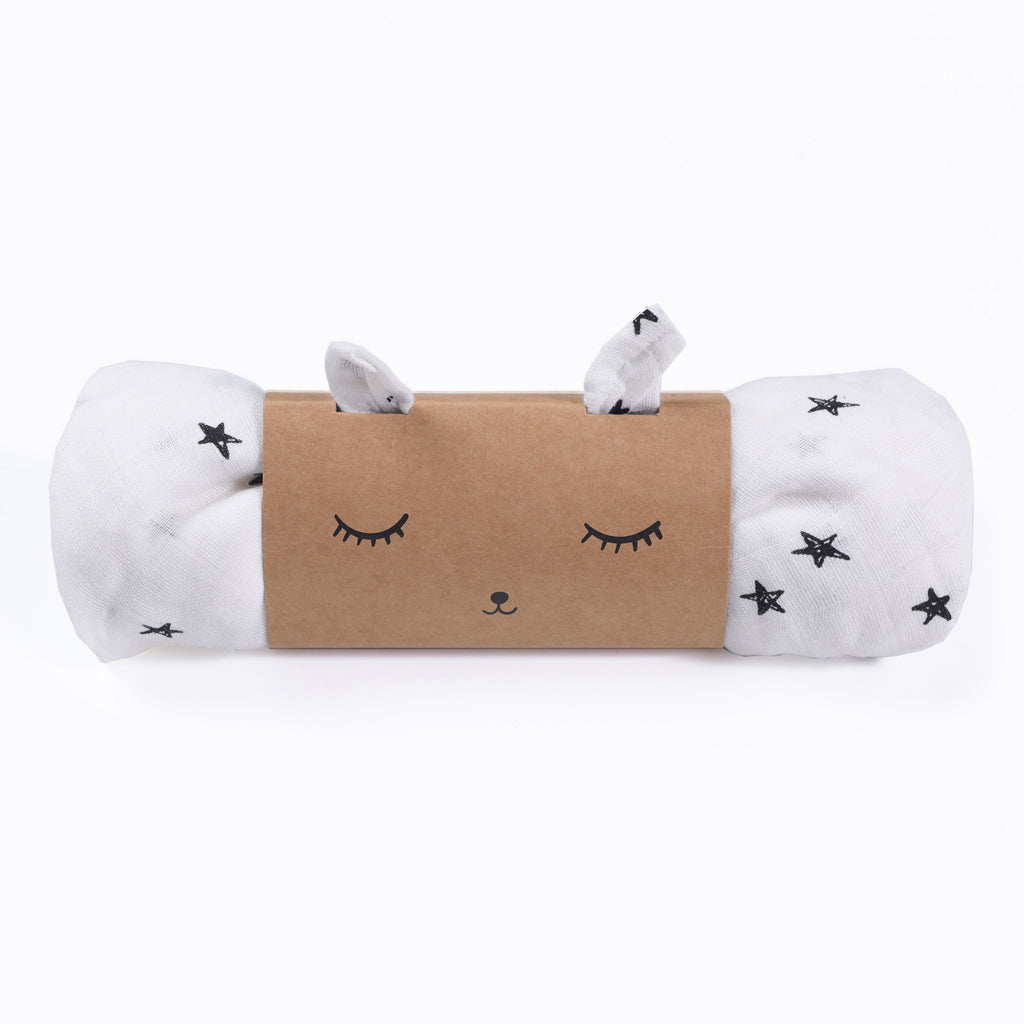 The wrap is adorably packaged in kraft paper depicting sleeping bunny - perfect as a gift!
